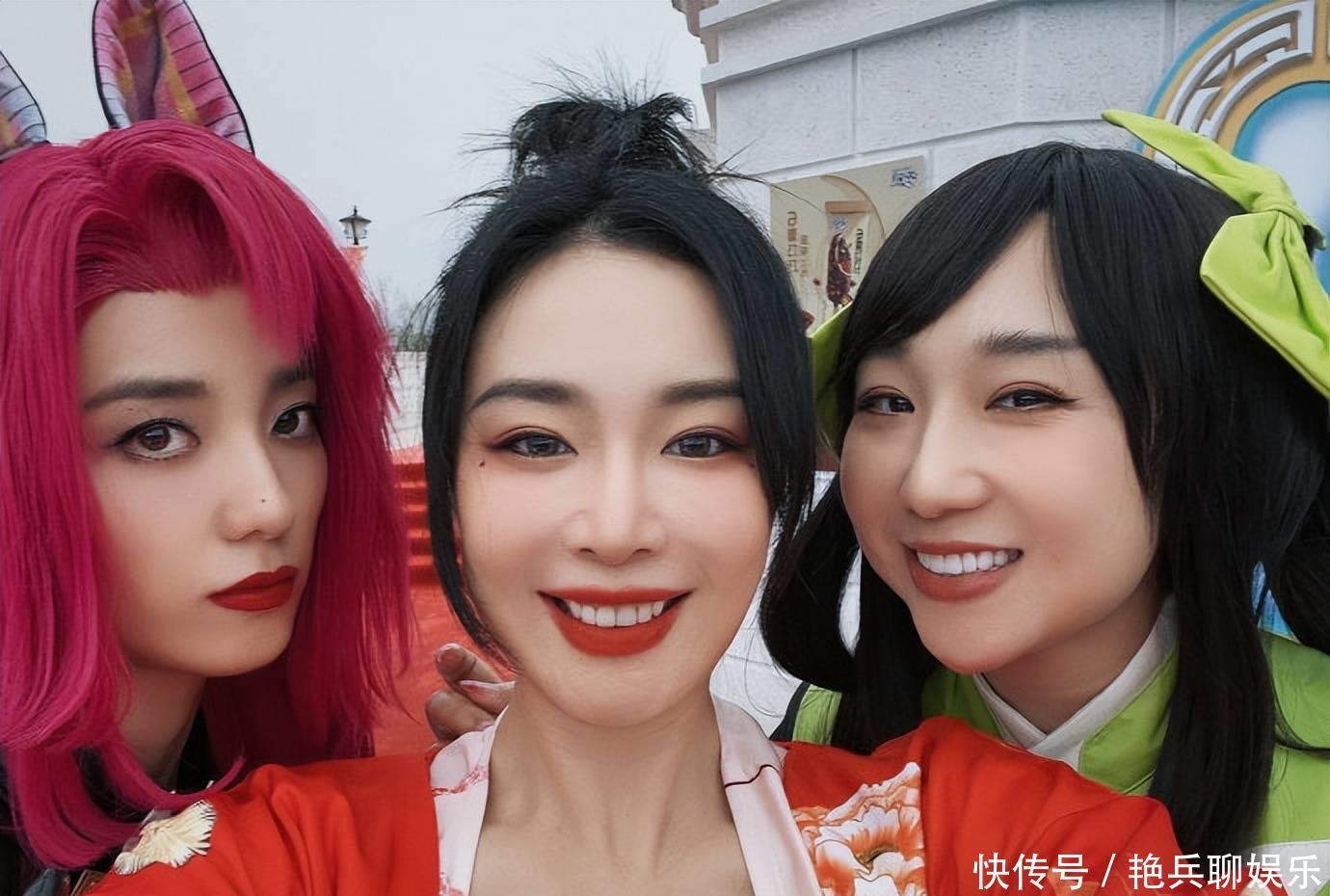 丞磊与邀请的好一又友,化身甄姬的孔雪儿,构成了发量王者队。